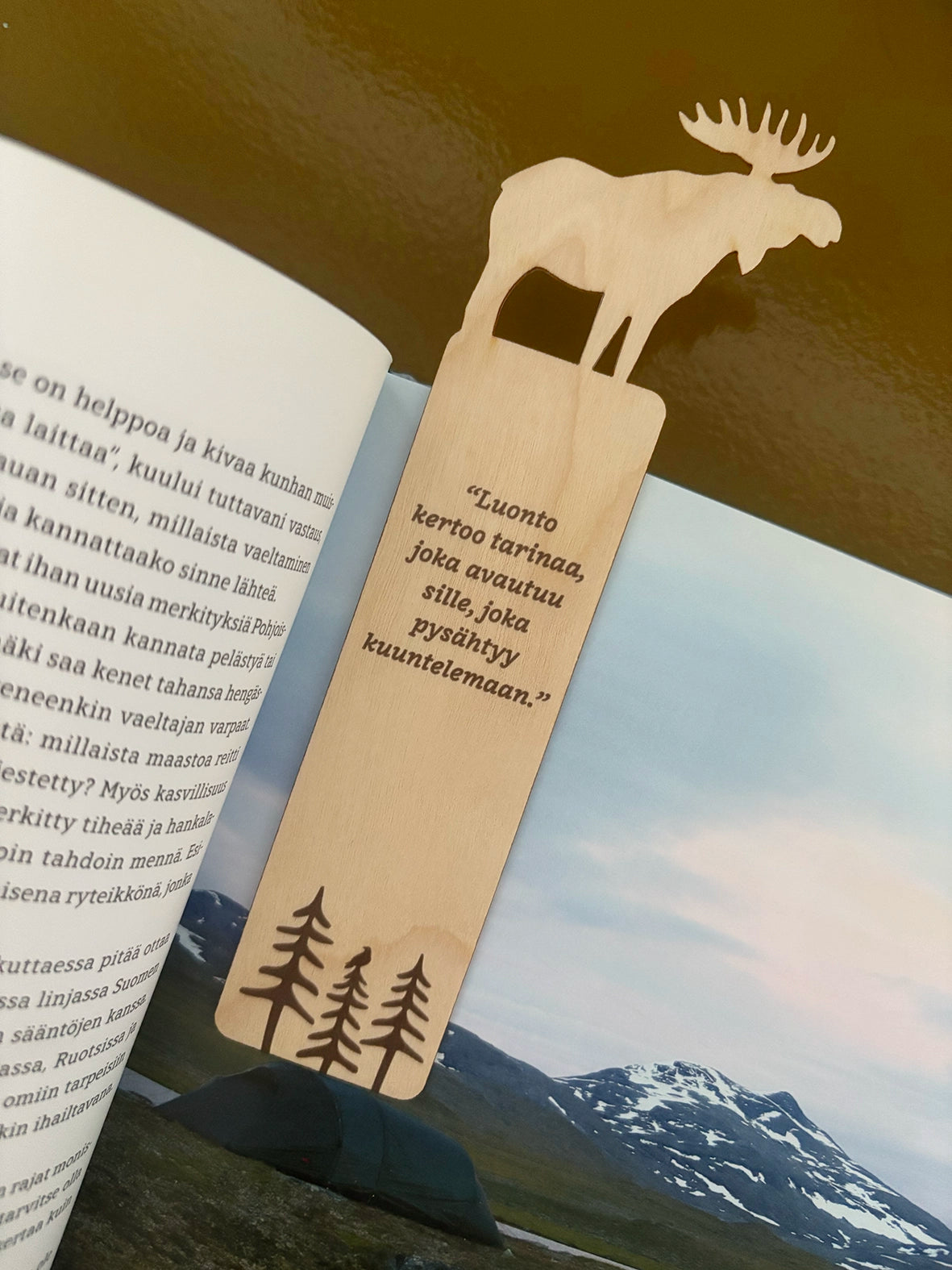 Kotimaisesta koivuvanerista valmistettu Hirvi-kirjanmerkki on komea, kevyt ja kestävä -täydellinen lahja kaikille luonnon ystäville ja intohimoisille lukijoille.