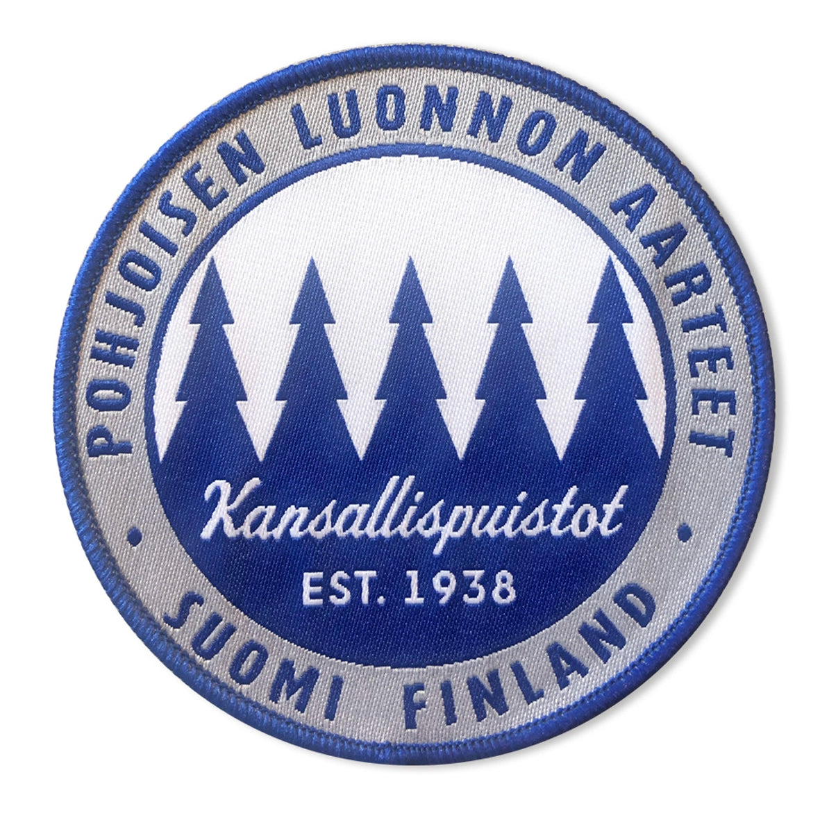 Ensimmäisten kansallispuistojemme perustamista juhlistava tyylikäs ommeltava kangasmerkki sopii täydellisesti komistamaan reppua tai retkivaatetta.
